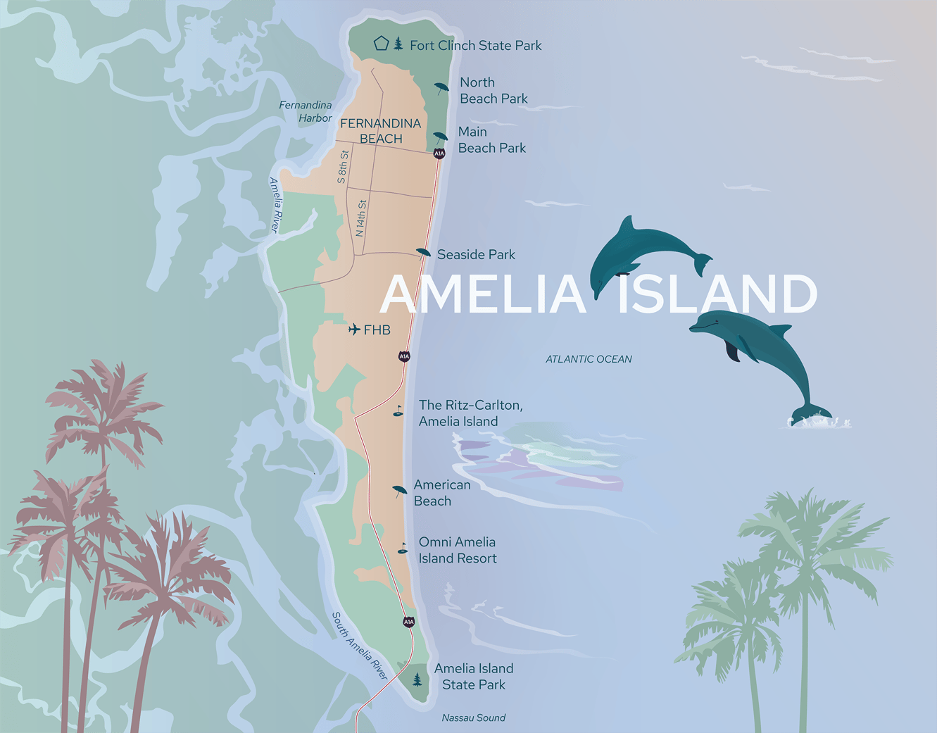 Amelia Island Location Map – Amelia Island, Florida is the southernmost Sea Island chain of barrier islands in the U.S. It is 13 miles long and 2 miles wide. It is located about 30 minutes east of Jacksonville. The island has . In Fernandina Beach, I recommend staying at Amelia Island Williams House for its awesome ratings and location. However, Iโd say that The Ritz-Carlton, Amelia Island (in American Beach) is the best .