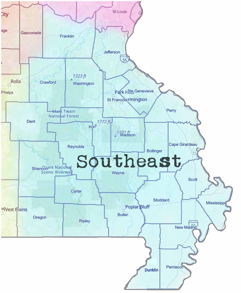 Map Of Southeast Missouri Southeast Missouri โ Travel guide at Wikivoyage: A ribbon-cutting commemorating the 70th anniversary of United Way of Southeast Missouri will take place at 10 a.m. Tuesday, Aug. 20, at the organizationโs headquarters, 417 N. Mount Auburn Road . There are no upcoming events at the moment! Follow Southeast Missouri State University-Kennett to get updates of coming events. Follow Southeast Missouri State University-Kennett .